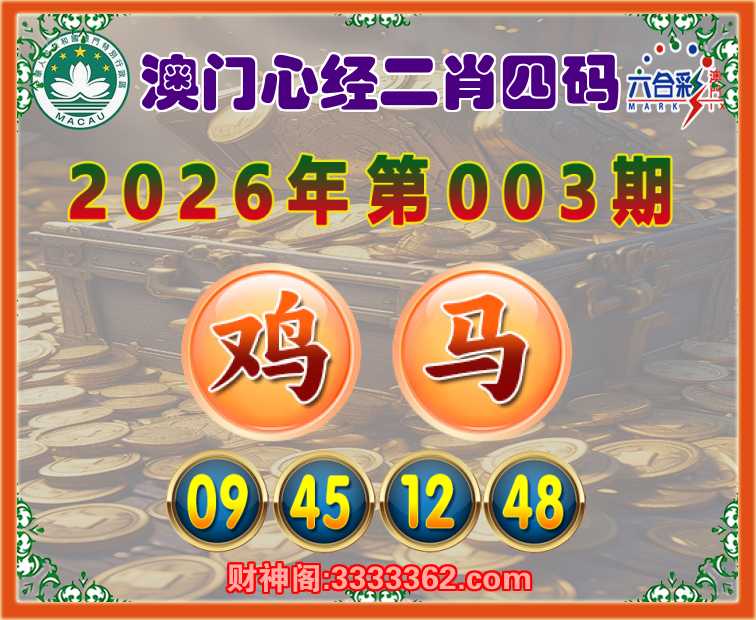 003期:【澳门心经】 🌳二肖四码🌳【马】【09.45.12.48】开:鸡09