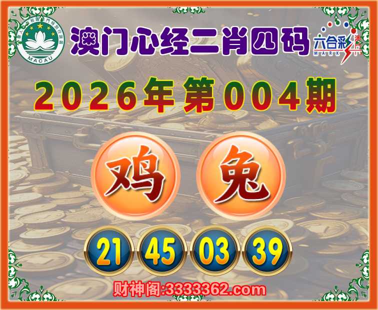 004期:【澳门心经】 🌳二肖四码🌳【兔】【21.45.03.39】开:鸡45