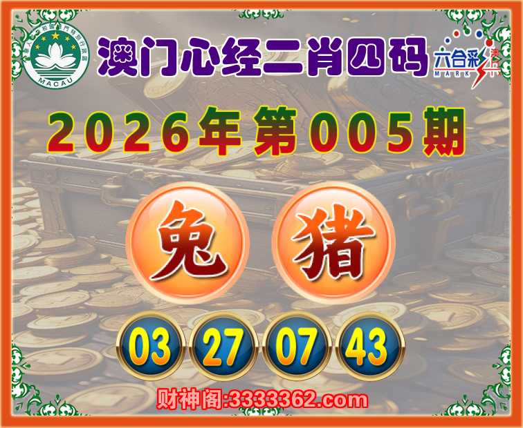 005期:【澳门心经】 🌳二肖四码🌳【兔】【03.27.07.43】开:猪43