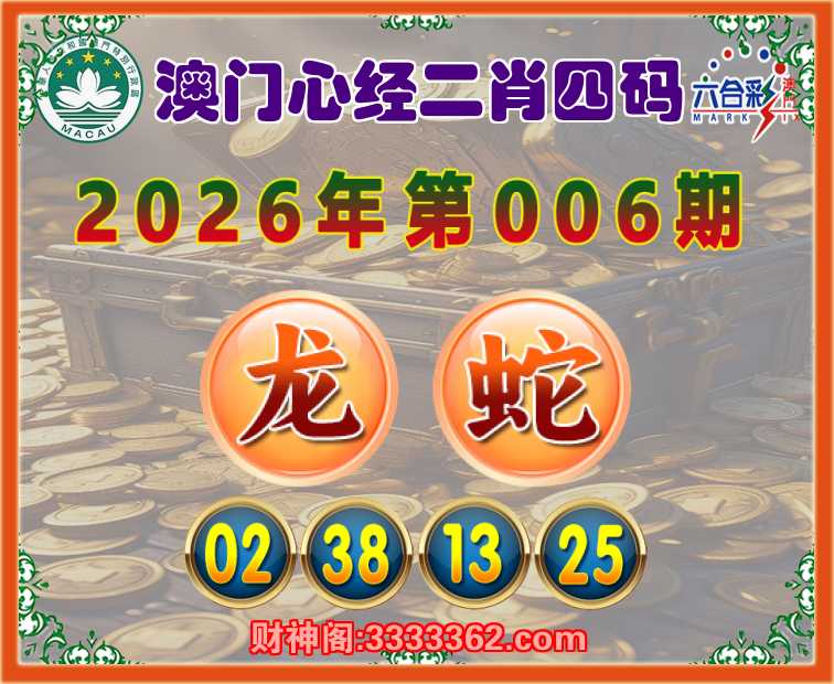 006期:【澳门心经】 🌳二肖四码🌳【龙】【02.38.13.25】开:蛇13