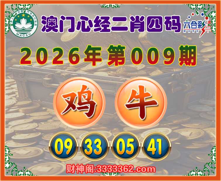 009期:【澳门心经】 🌳二肖四码🌳【鸡牛】【09.33.05.41】开:00准