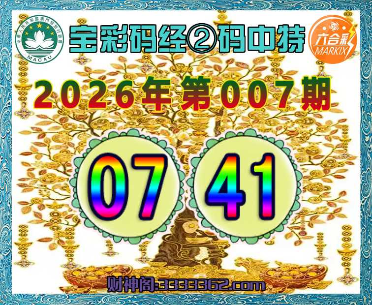 007期:〖宝彩码经〗 ✂️②码中特✂️【07.41】开:41