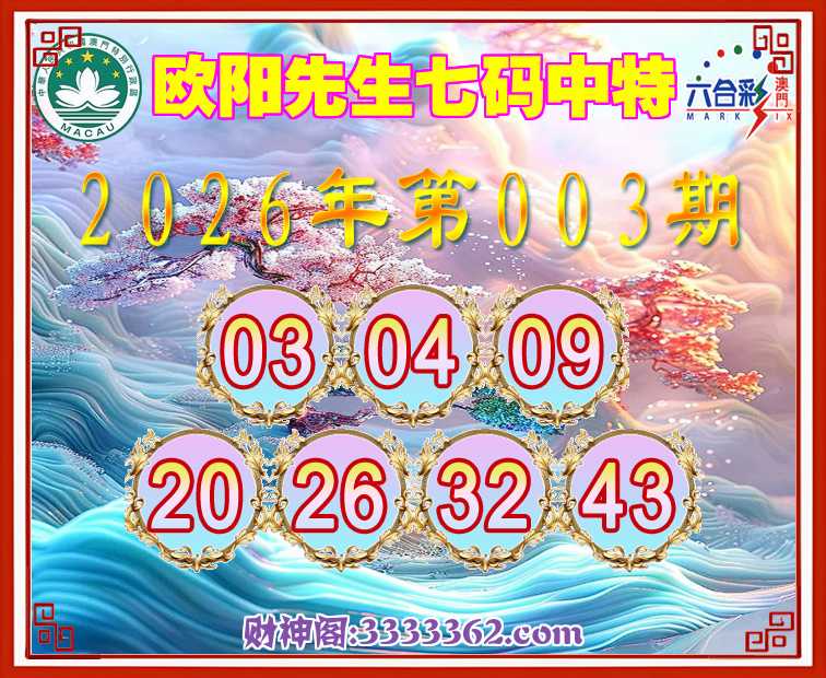 003期:《欧阳先生》 🚣七码中特🚣【03.04.09.20.26.32.43】开:09