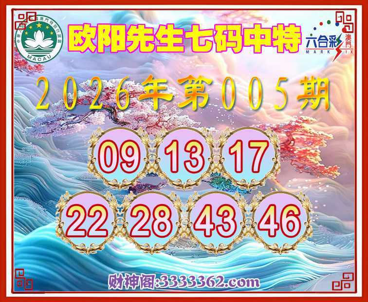 005期:《欧阳先生》 🚣七码中特🚣【09.13.17.22.28.43.46】开:43