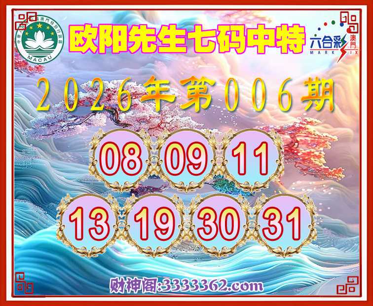 006期:《欧阳先生》 🚣七码中特🚣【08.09.11.13.19.30.31】开:13