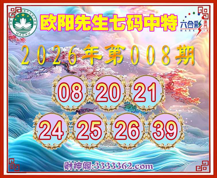 008期:《欧阳先生》 🚣七码中特🚣【08.20.21.24.25.26.39】开:21