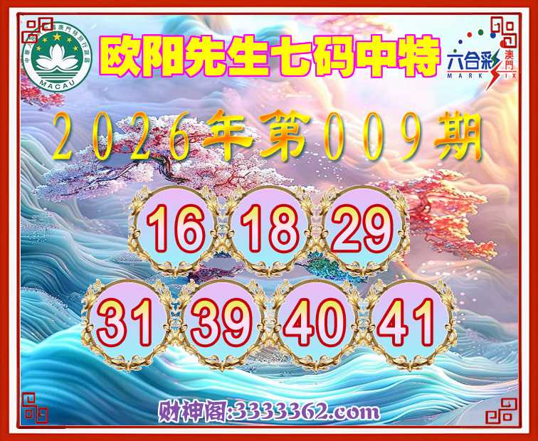 009期:《欧阳先生》 🚣七码中特🚣【16.18.29.31.39.40.41】开:00准