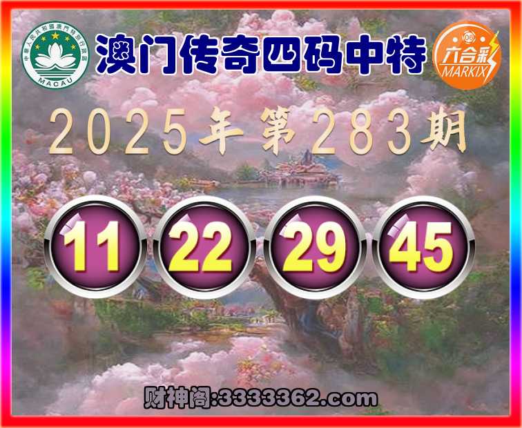 283期:【澳门传奇】 🥽四码中特🥽【11.22.29.45】开:45
