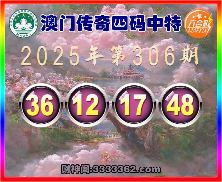 306期:【澳门传奇】 🥽四码中特🥽【36.12.17.48.24.41.44】开:17